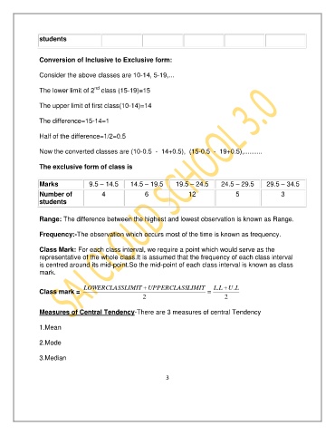 Now the converted classes are (10-0.5 - 14+0.5), (15-0.5 - 19+0.5),..........