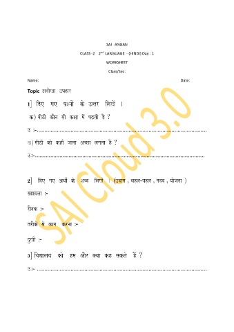 CLASS -2 2 LANGUAGE - (HINDI) Day : 1