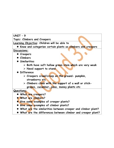 Know and categorize certain plants as climbers and creepers