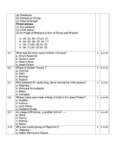 Q.8 Whose statue was made entirely of Gold in the Jewel Palace? 1 p.no-66