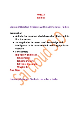 Learning Outcome :Students can solve a riddle.