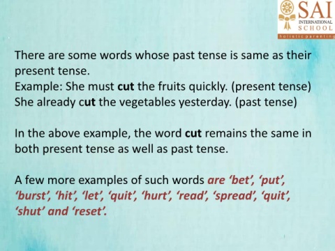 There are some words whose past tense is same as their