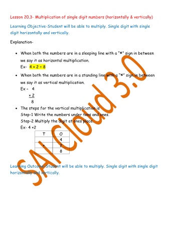 Lesson 20.3- Multiplication of single digit numbers (horizontally & vertically)
