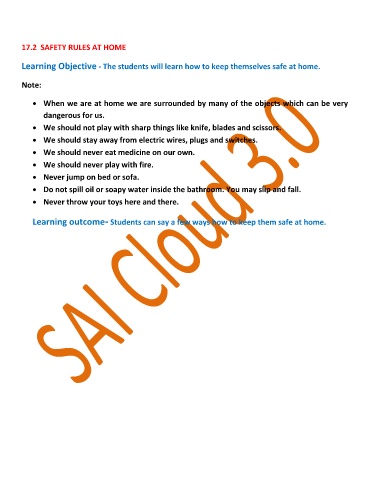 Learning outcome- Students can say a few ways how to keep them safe at home.