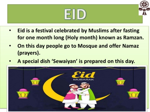•       A special dish ‘Sewaiyan’ is prepared on this day.