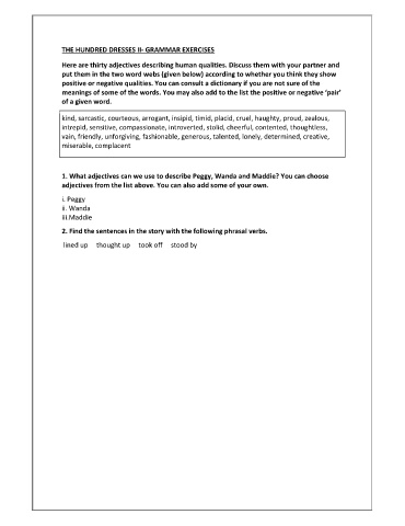 THE HUNDRED DRESSES II- GRAMMAR EXERCISES