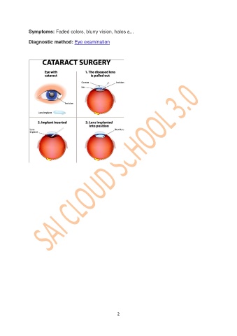 Symptoms: Faded colors, blurry vision, halos a... Diagnostic method: Eye examination 2