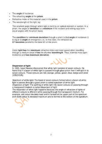 example, red colour deviates least and is formed at the upper part of the spectrum
