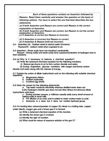 Q.4 Assertion (A) : Sodium metal is stored under Kerosene.