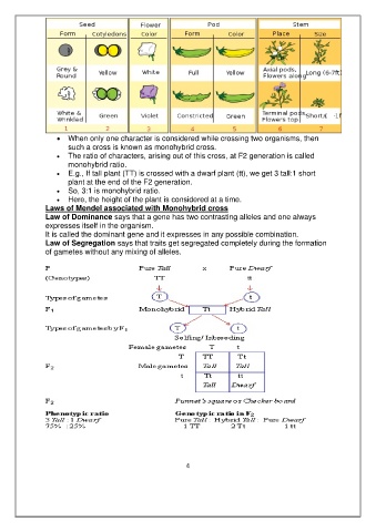• E.g., If tall plant (TT) is crossed with a dwarf plant (tt), we get 3 tall:1 short