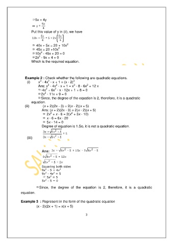 Example 3 : Represent in the form of the quadratic equation