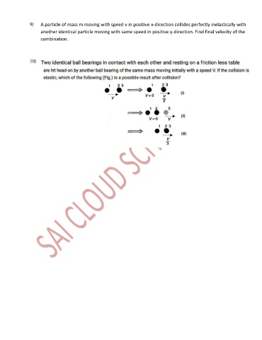 9) A particle of mass m moving with speed v in positive x-direction collides perfectly inelastically with another identical particle moving with same speed in positive y-direction. Find final velocity of the combination. 10)