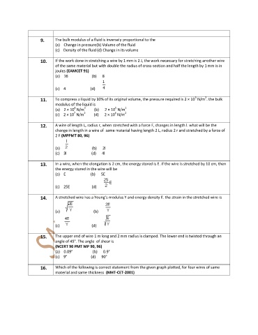 10. If the work done in stretching a wire by 1 mm is 2 J, the work necessary for stretching another wire