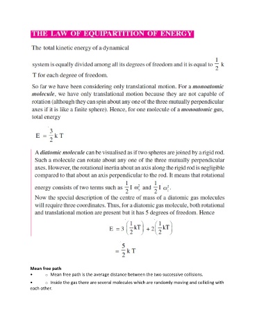 Mean free path • o Mean free path is the average distance between the two successive collisions. • o Inside the gas there are several molecules which are randomly moving and colliding with each other.