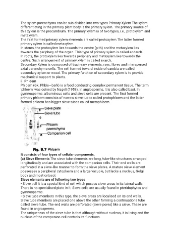 gymnosperms, albuminous cells and sieve cells are present. The first formed