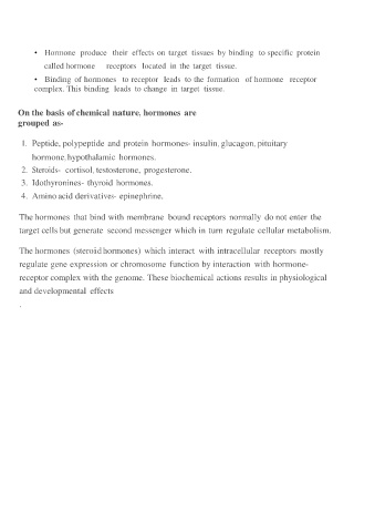 • Binding of hormones to receptor leads to the formation of hormone receptor