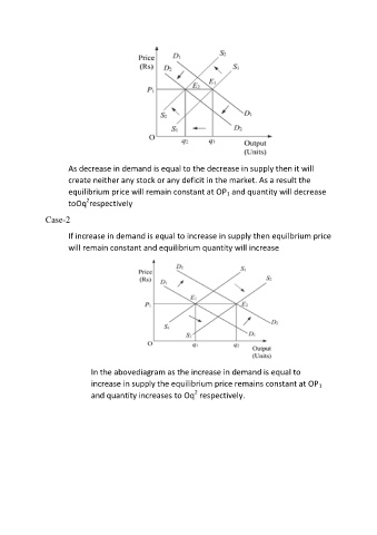 equilibrium price will remain constant at OP 1 and quantity will decrease