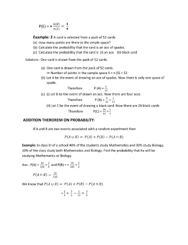 ADDITION THEROREM ON PROBABILITY: