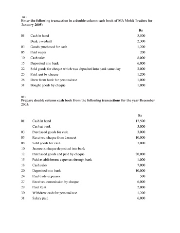Enter the following transaction in a double column cash book of M/s Mohit Traders for