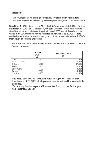 Ram Prashad keeps his books on Single Entry System and from them and the