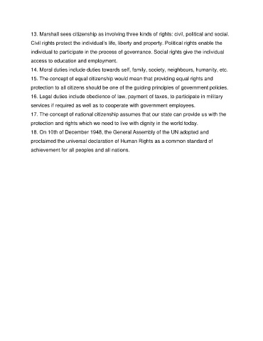 13. Marshall sees citizenship as involving three kinds of rights: civil, political and social.
