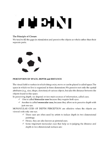 PERCEPTION OF SPACE, DEPTH and DISTANCE