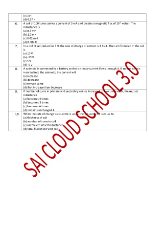 7. In a coil of self-induction 5 H, the rate of change of current is 2 As-1. Then emf induced in the coil