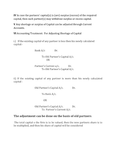 i.) If the existing capital of any partner is less then his newly calculated