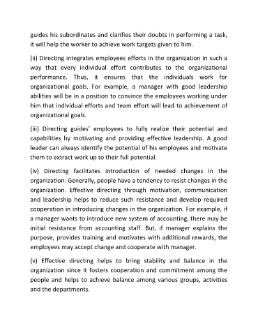 (ii) Directing integrates employees efforts in the organization in such a