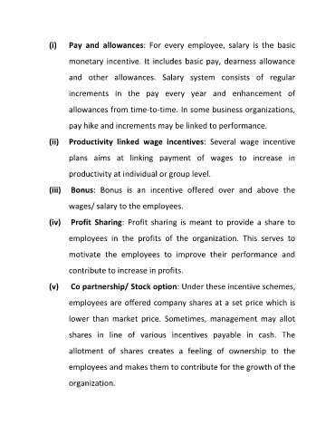 (v) Co partnership/ Stock option: Under these incentive schemes,