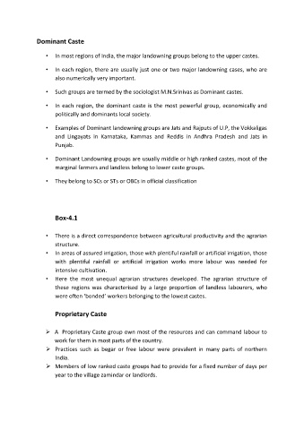 ➢ A Proprietary Caste group own most of the resources and can command labour to