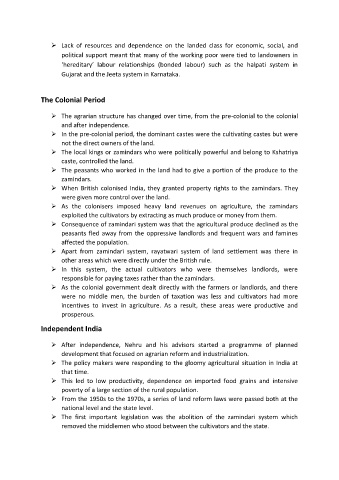 ➢ The agrarian structure has changed over time, from the pre-colonial to the colonial