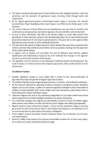 ➢ The states invested in development of rural infrastructure like irrigation facilities, roads and
