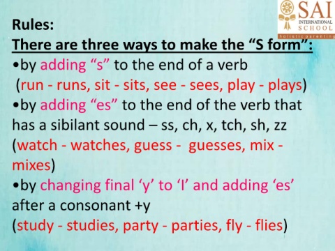 •by adding “s” to the end of a verb
