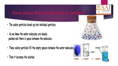 How does the solute mix in water?