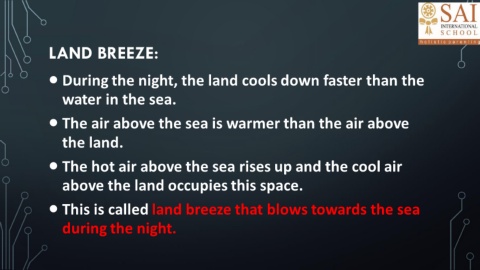 • This is called land breeze that blows towards the sea