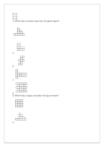 b) 13 c) 14 d) 15 4. Which has a smaller area than the given figure? a. b. c. d. 5. Which has a larger area than the figure shown? a.