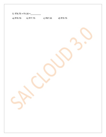 5. ₹78.75 + ₹1.00 =_________ a) ₹78.76 b) ₹77.75 c) ₹87.55 d) ₹79.75
