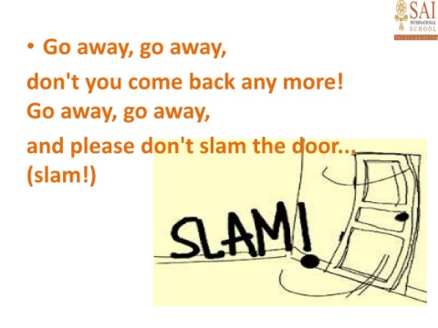 • Go away, go away, don't you come back any more! Go away, go away, and please don't slam the door... (slam!)