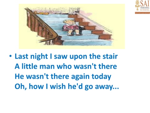• Last night I saw upon the stair A little man who wasn't there He wasn't there again today Oh, how I wish he'd go away...