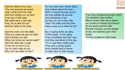 How foolishly you talk They completely lost their way ‘Till they toddled to their beds.