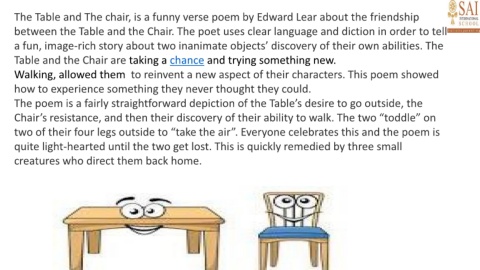 The Table and The chair, is a funny verse poem by Edward Lear about the friendship