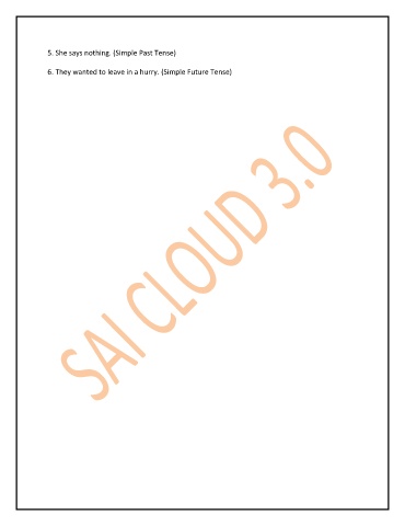 5. She says nothing. (Simple Past Tense) 6. They wanted to leave in a hurry. (Simple Future Tense)