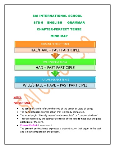 Page 1 - PERFECT TENSE- MIND MAP WITH NOTES