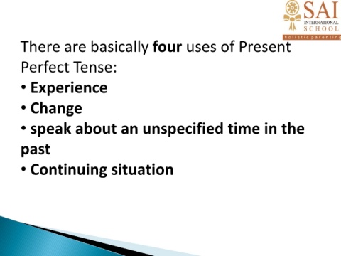 There are basically four uses of Present Perfect Tense: • Experience • Change • speak about an unspecified time in the past • Continuing situation