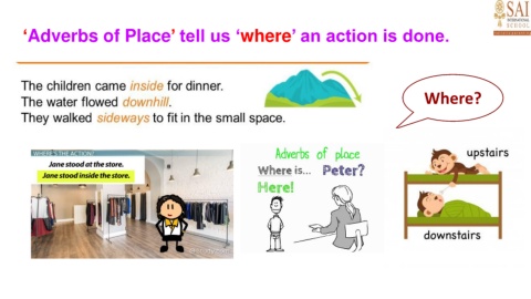 ‘Adverbs of Place’ tell us ‘where’ an action is done. Where?