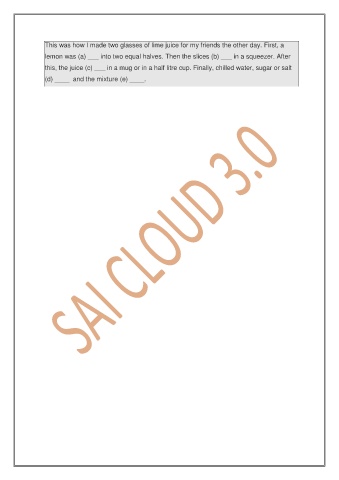 this, the juice (c) ___ in a mug or in a half litre cup. Finally, chilled water, sugar or salt
