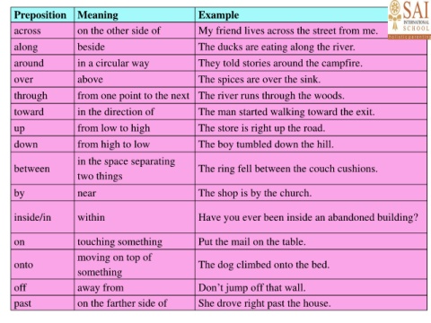 Preposition Meaning Example