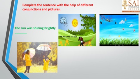 Complete the sentence with the help of different conjunctions and pictures. The sun was shining brightly _______