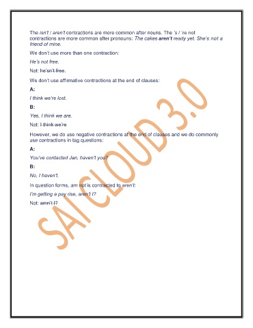 contractions are more common after pronouns: The cakes aren’t ready yet. She’s not a